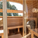 De standaarduitvoering heeft een houten voorkant. Tegen meerprijs kan de sauna worden voorzien van een volledig glazen voorwand en/of een panoramaraam in de achterwand.