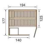 hoogte van de sauna 199 cm, minimale plafondhoogte 210 cm