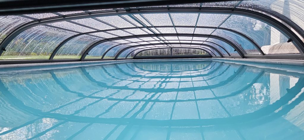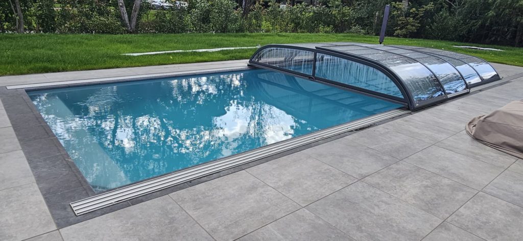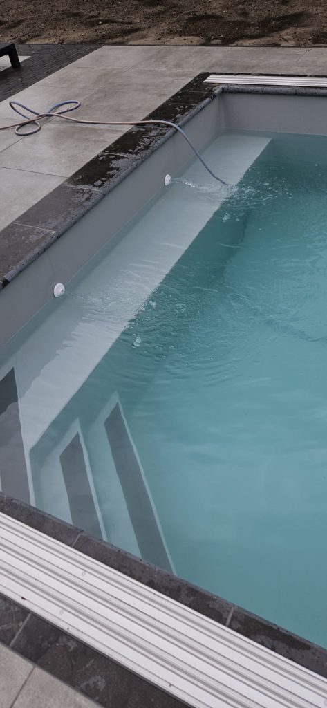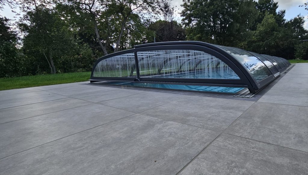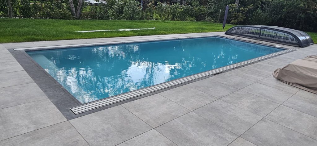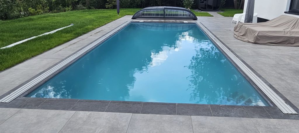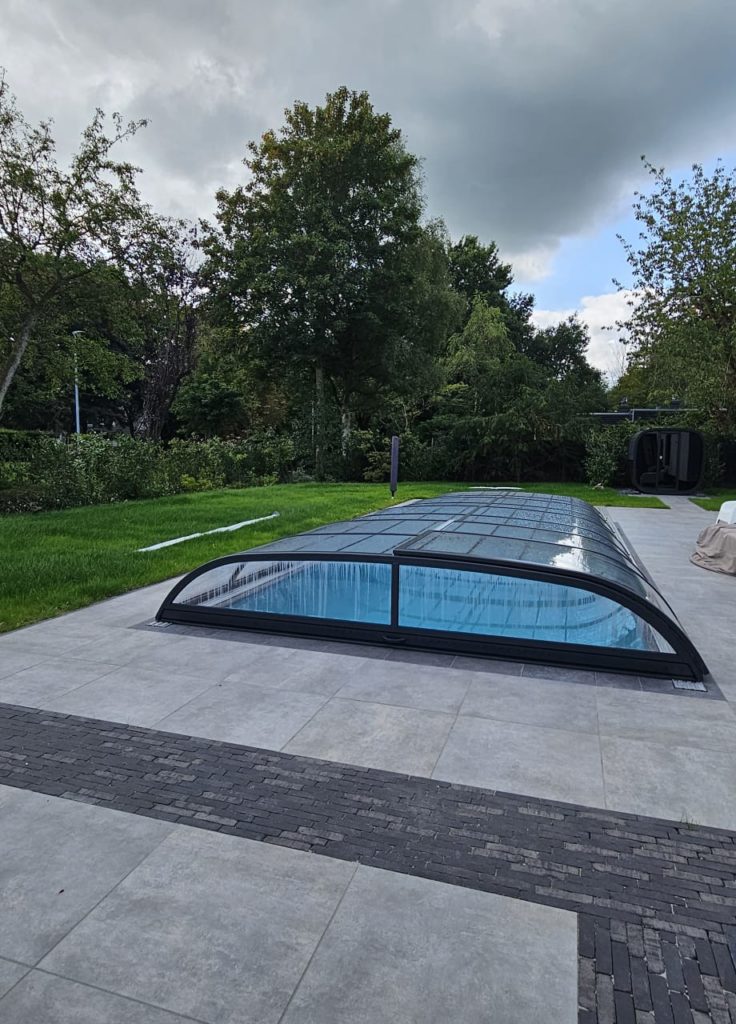 Dit zwembad van 10 x 4 meter hebben wij in de zomer van 2025 opgeleverd. Over het zwembad hebben wij een Aura S2 overkapping geplaatst. Heerlijk om onder te zwemmen als het weer wat minder is. Bij mooi weer kan de overkapping helemaal tot achter het bad worden geschoven voor vrij gebruik van het hele zwembad. In het bad hebben wij een hoektrap geplaatst in combinatie met een zitbank over de korte zijde.